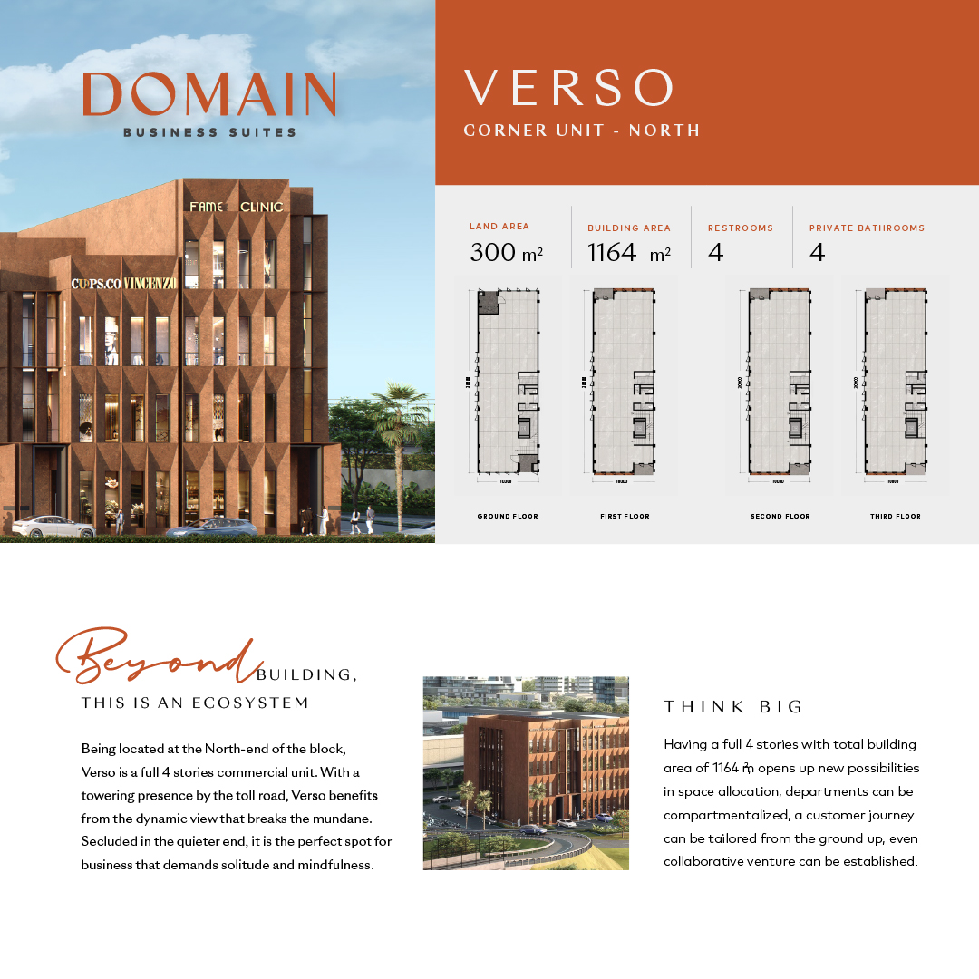 Located in the most prime boulevard of Downtown Alam Sutera, Domain Business Suites reinvents commerce with innovative features; contemporary facade with double frontage, four levels of adaptive space, made for visionaries, tastemakers & leading brands.